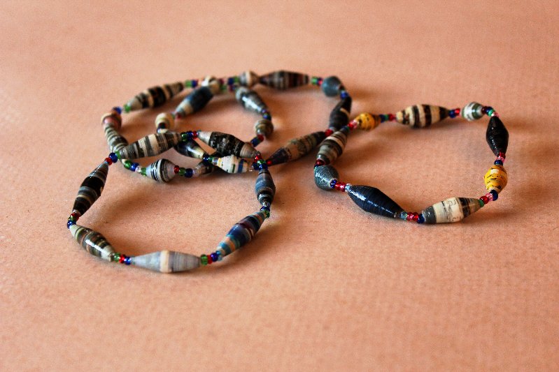 These beautiful pieces of jewellery are hand crafted in the Gonder area of northern Ethiopia by relatives of The Kindu Trust beneficiaries. Made from recycled glossy magazines these pieces are not only sustainable but also provide a vital source of income for people living in very hard conditions. The jewellery is the result of an innovative income generating scheme that is currently being run by The Kindu Trust.