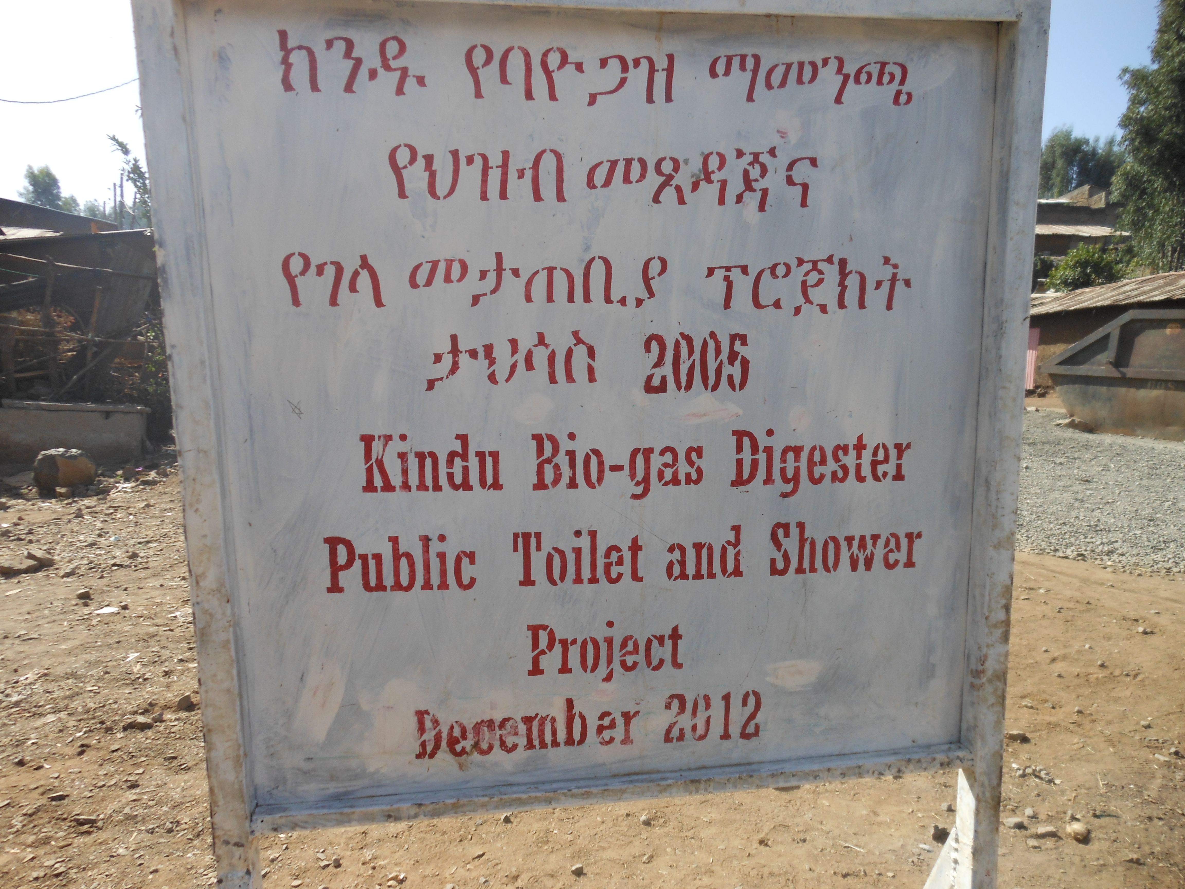 So in January 2013 The Kindu Trust opened a public toilet and shower facility with a biogas digester in the Abiye-Egzi Kebele (district) of Gondar. Waste from the toilets and organic waste from the neighbourhood are converted into methane which heats the showers and provides a kitchen area with cooking gas.