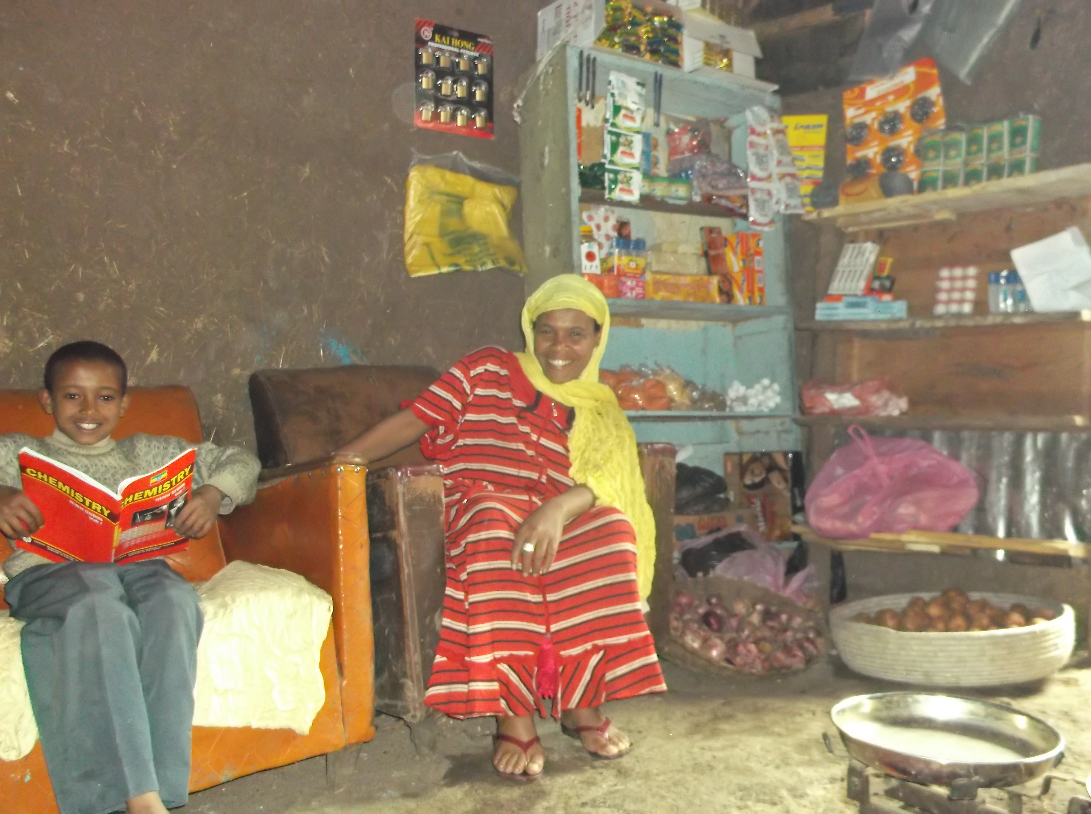 Kedire Walle is a 12 year old boy who lives in Gondar with his mother, step-father and step-sister. He plays football in his spare time and is in school at Grade 6 where his favourite subject is maths and he says he wants to be a pilot when he grows up. Kedire’s mother, Asefu, moved from rural areas to Gondar by herself following the death of her parents and worked hard to support herself and Kedire for 6 years. Then she met Kedire’s step-father and they had a daughter named Zemzem. Kedire’s step father works as a guard at a local school and his mother was raising the children but she wanted to work from home so that she could also support the family.