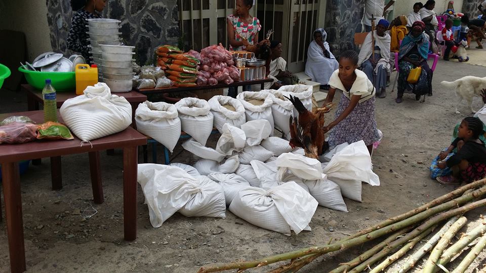 Thanks to all the amazing supporters who purchased Easter gifts for families in Ethiopia. A total of 37 parcels were bought and Marta and our volunteers from Hall Orchard headed down to the market to purchase the ideal items for families at Easter. The parcels will enable families to celebrate Easter in the traditional spirit as well as contributing to the local economy, farmers and traders who work at the market in Gondar. Families drifted in to the compound over the next week to pick up their gifts with plenty of time to prepare for the feast on the 12th April.